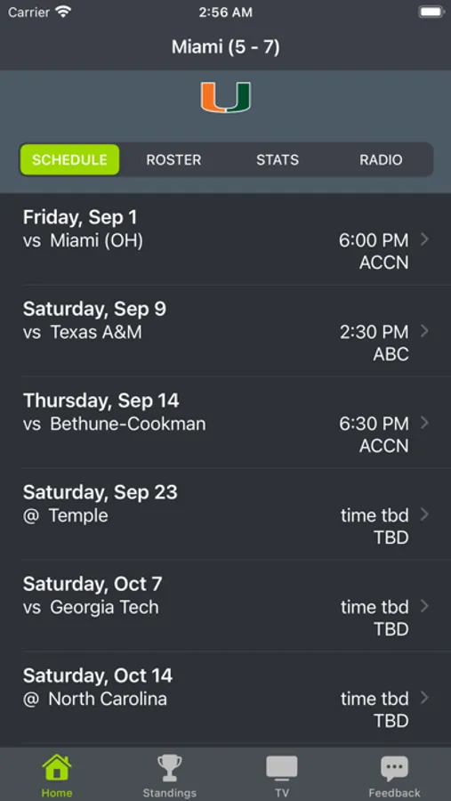 "...love the TV schedule. No longer have to look at my cable guide to look at my game schedule during College Game-day."