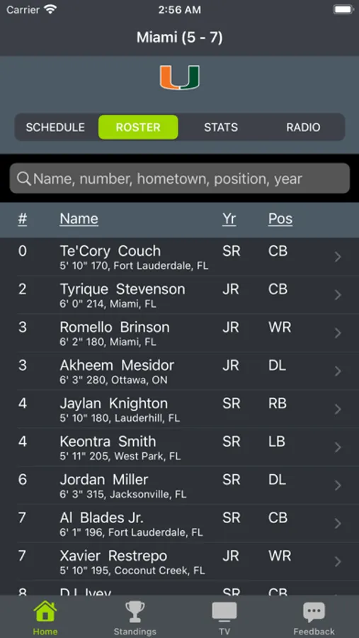Miami Hurricanes Football provides scores, links to live radio, schedules, tv channels, player profiles, and game matchups in one location.