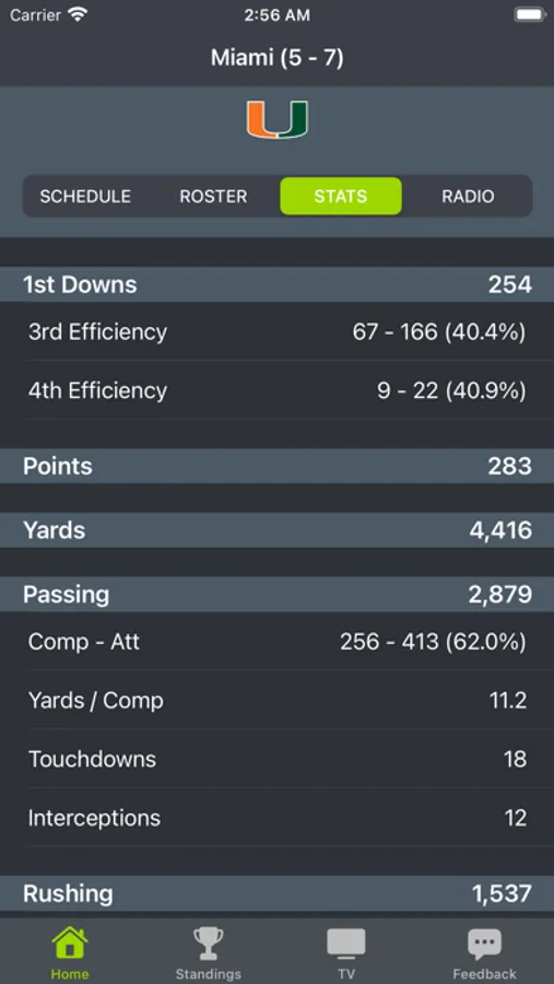 Head-to-head matchups for all of the Miami football games. Link to live radio, get scores, schedules, rosters, tv channels, and stats.