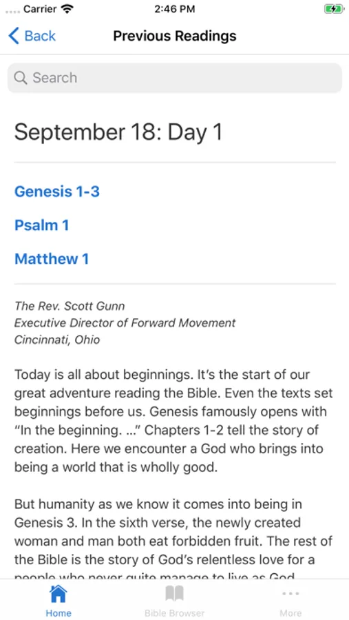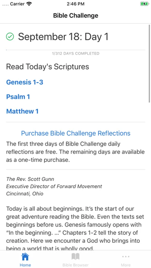 The Bible Challenge Reading Plan app supports you in reading the entire Bible, Old and New Testaments over the course of a year. You’ll read three chapters of Old Testament, a chapter of New Testament, and a Psalm each day. You can choose King James Version or New Revised Standard Version. An optional in-app purchase provides access to daily meditations from The Bible Challenge (Forward Movement, 2012) to accompany your reading. You can also use the app to browse the Bible to look up your favorite passages.