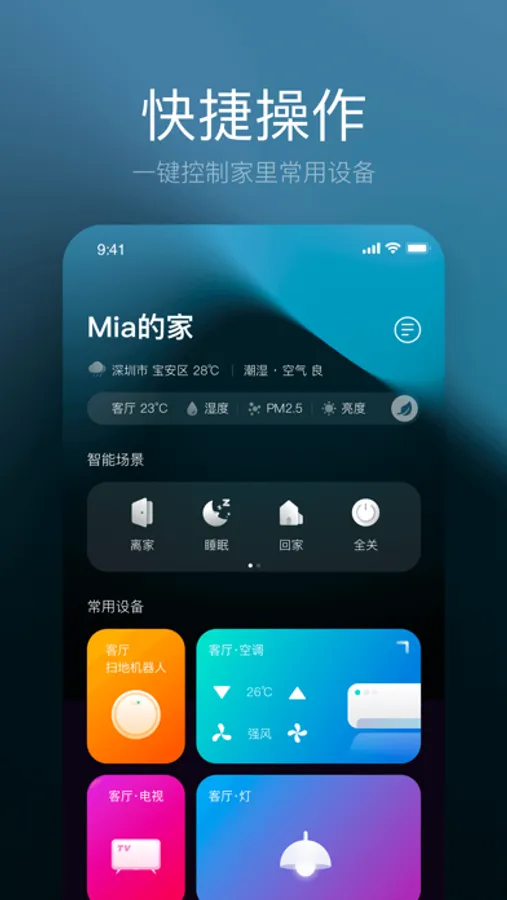 2、远程控制:出门在外也能远程控制,APP查看设备运行状况,随时随地掌控家中的一切。