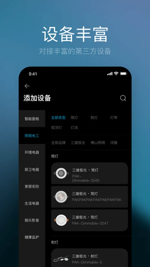 1、设备丰富:全球化部署智能家居生态系统,标准化对接星络及生态伙伴智能设备。