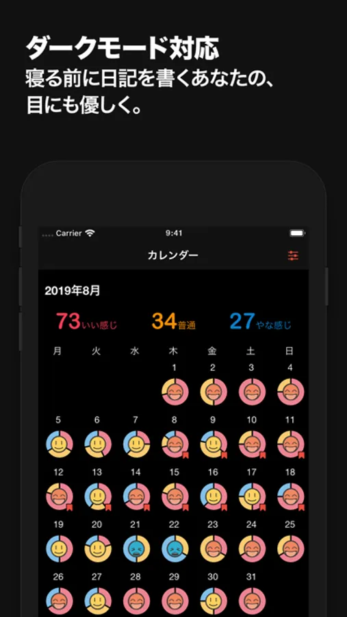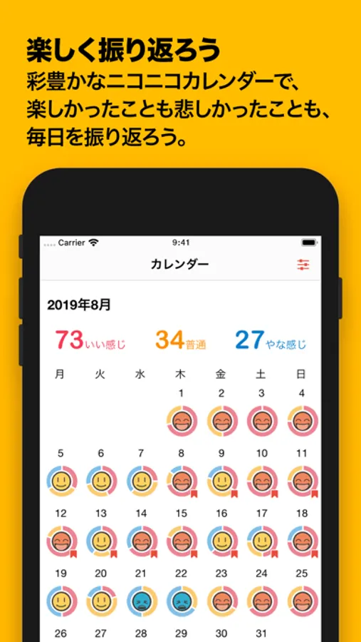 ニコニコログは『今、その瞬間の気分』を記録して、彩豊かに生まれ変わったニコニコカレンダーで『気分の変化をチェック』できる、あなたとチームやグループのためのアプリです。