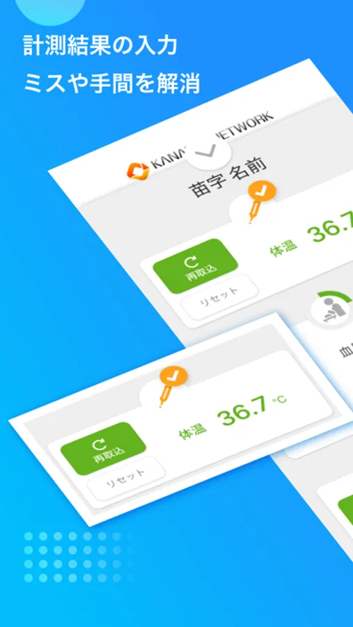 「血圧」「脈拍」「体温」「SpO2」を自動入力することで手入力の手間を省きます。