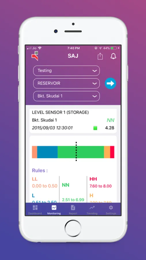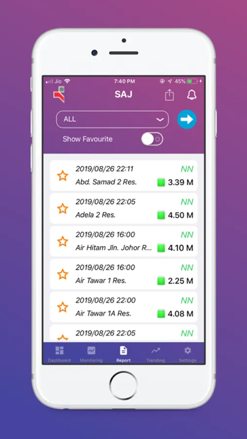 4.Trending- Trending Chart that enables the customer better understand of their reservoir water level history.
