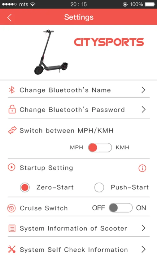 2, Through a Bluetooth connection to the CITYSPORTS balanced car, the App can display vehicle power, speed, the mileage and other states.