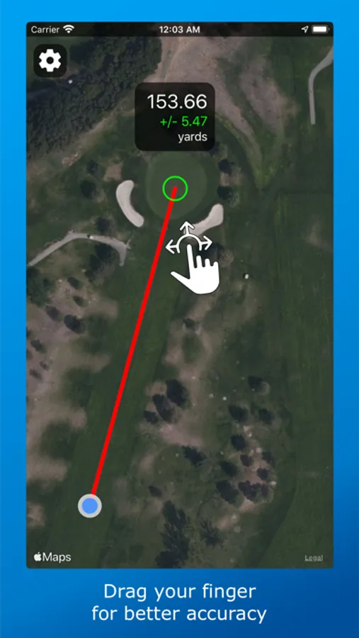 To use Pin High simply press and hold on the map, the distance to that point is shown, drag your finger around to zero in on your target. You can get the distance to any point on the course.