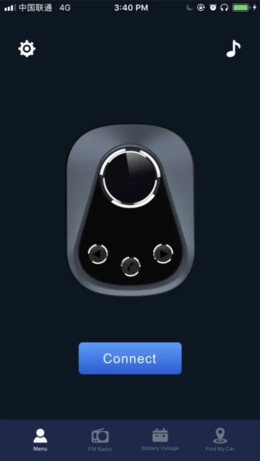 Usage:Plug smart FM+ transmitter into the vehicle's DC 12V or 24V cigarette lighter socket. After the car is started, the transmitter will be automatically turned on. The indicator light flashes blue to enter the Bluetooth pairing mode.Open the Smart FM+ APP and click “Connect” to connect the device via Bluetooth. Once connected, the icon “Connected” appears.