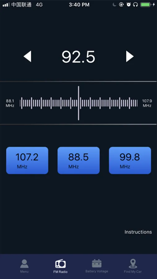 1、FM Settings:Turn on the car radio, set the frequency between 88.1-107.9 MHZ, plug in the device, adjust the frequency to the same frequency you set on the radio.