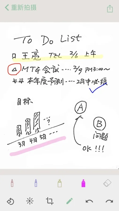 可对校正后的图片添加笔画,涂色。