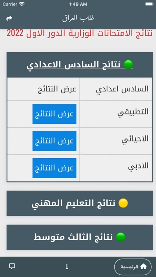 تطبيق لعرض نتائج الامتحانات الوزارية في العراق, للصف السادس الاعدادي لفرعيه العلمي والادبي و الثالث المتوسط مع نشر الاخبار العاجلة ,والمهمة لكل طالب عراقي