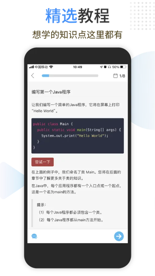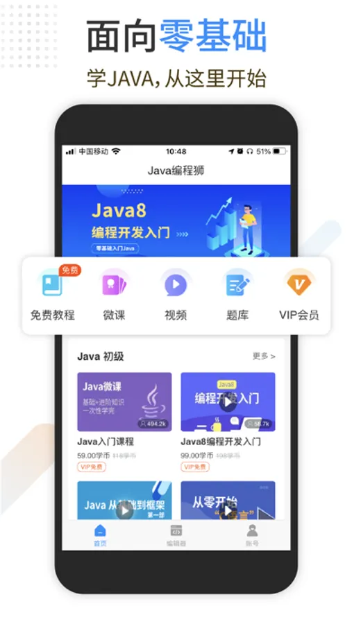 Java编程狮是W3Cschool编程狮旗下专门为零基础Java编程爱好者打造的一款入门工具App,致力于帮助初学者入门,轻松迈入编程世界。学Java,从这里开始!