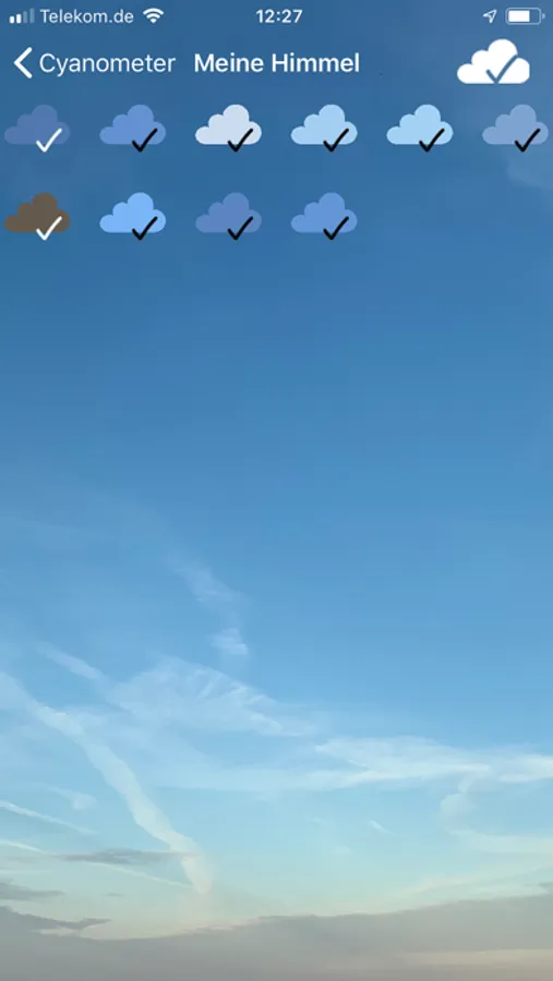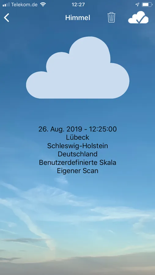 Each scan is saved inside the app containing information about date, time and locality. So it is possible to compare scans of blue skies from different locations.