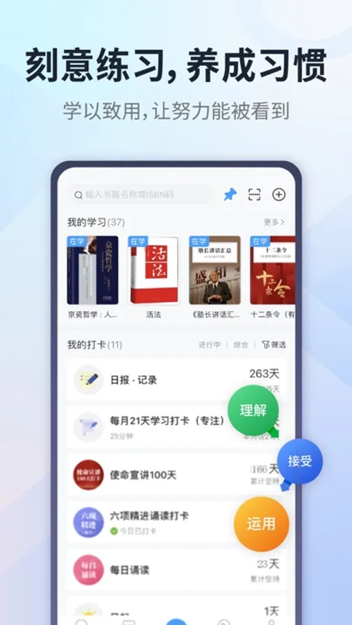 - 读书笔记:通过读书打卡,记录你的学习笔记和成果,构建属于你自己的学习知识库和成长履历;