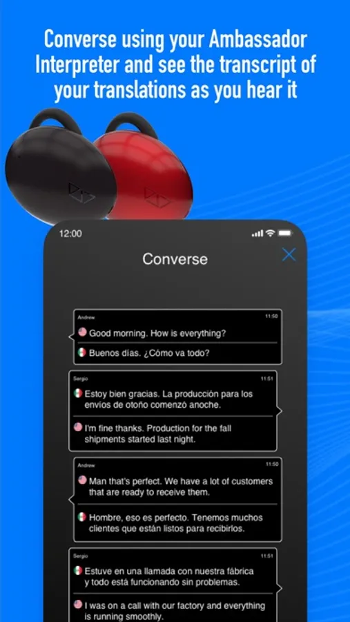 *The app requires purchase of an Ambassador Interpreter device by Waverly Labs Inc., acceptance of Terms of