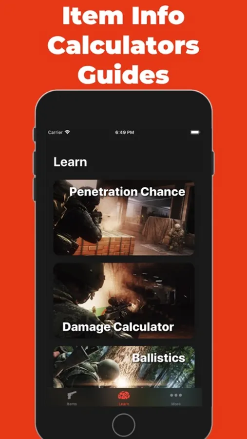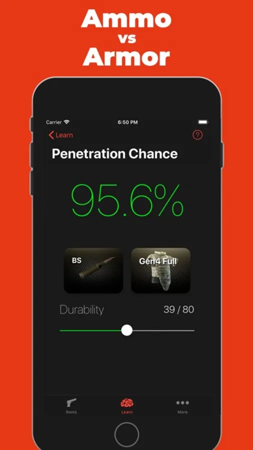 The unofficial Escape from Tarkov companion app, brought to you by Veritas with help from his community, is just what every PMC needs by their side before, during, and after their raids! Search, view, and compare everything from firearms, ammo, and body armor, to medical items and melee weapons. Interactive ballistics calculators help you learn about damage, penetration, and fragmentation of different rounds vs. different types of armor and enemies. Informational write-ups on the various systems in the game and how they work, from a high-level perspective, and so much more coming in the future!
