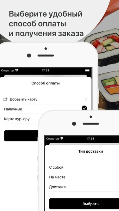 Выберите способ оплаты: Наличными или картой. Примите правила оплаты и нажмите кнопку “Заказать”.