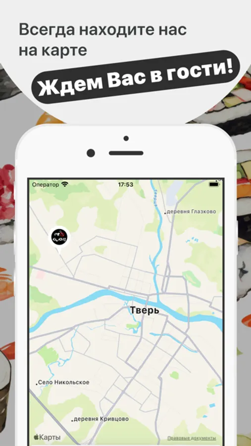 Как сделать заказ в приложении “PRO SUSHI”: выберите понравившиеся позиции из меню, добавьте их в корзину и перейдите на экран оформления заказа (по нажатию на иконку корзины).