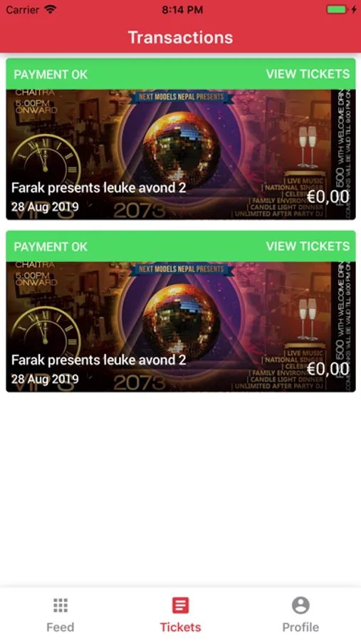 Transactions for tickets are all handled within the application itself -- no third-party apps required! Everything you need is found within one application. Your tickets will be held as well, and organizers can use the app as well to scan tickets -- this makes it easy to detect fraud and to bookkeep who is already attending your event.