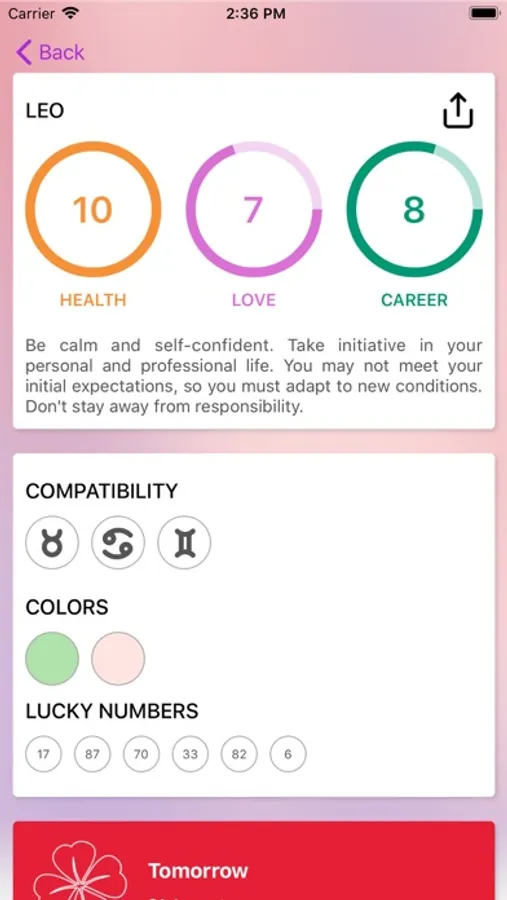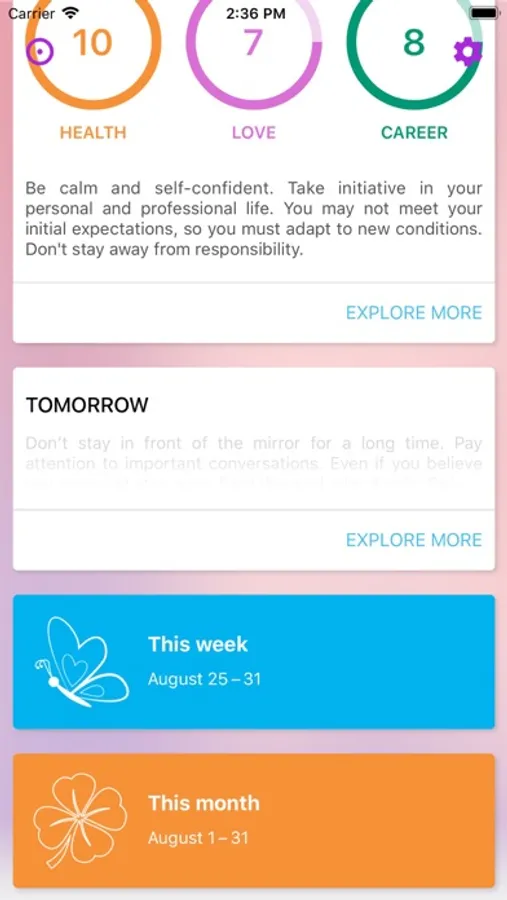 Discover what the future holds for you. Get an insight on what to expect for love, work, wellbeing and good fortune for today, tomorrow, the week or in 2020 with free daily horoscopes app. Follow your zodiac sign and observe horoscopes of friends and loved ones'.
