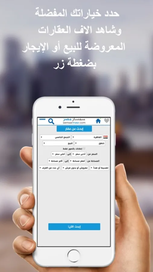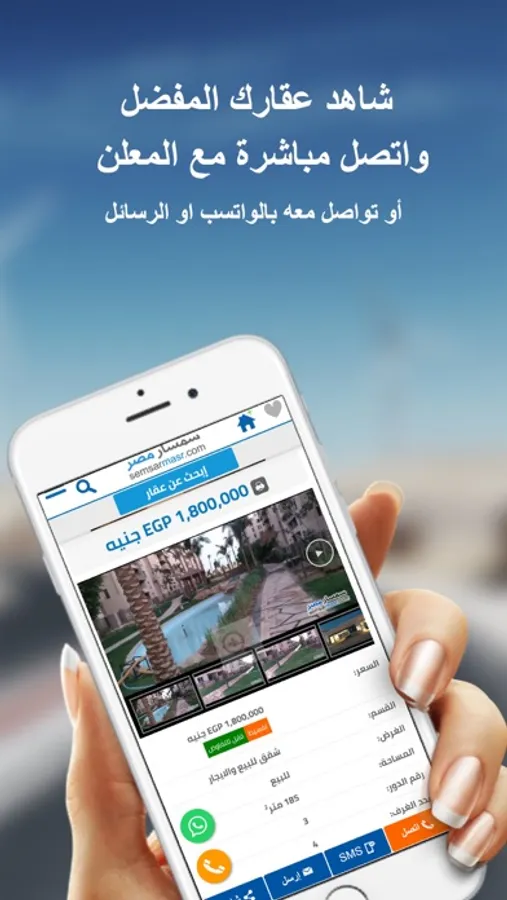 التطبيق العقاري سمسار مصر SemsarMar يوفر لك البحث عن احدث العقارات المعروضة للبيع والشراء في مصر بالصور والخرائط بأفضل وارخص الاسعار، ابحث مجاناً عن شقق للبيع والايجار في مصر كذلك شاهد اعلانات الاراضي والفلل والشاليهات والمصايف المعروضة للايجار في مصر. يوفر سمسار مصر ايضا محلات للبيع ومنشئات تجارية ومخازن ومزارع معروضة للبيع. وكذلك شقق مفروشة للايجار قانون جديد أو قديم للتنازل