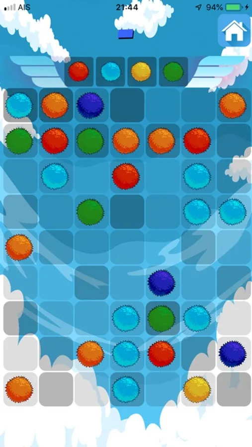 To remove balls, arrange at least five same color balls to lines (horizontal, vertical or diagonal).