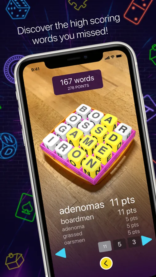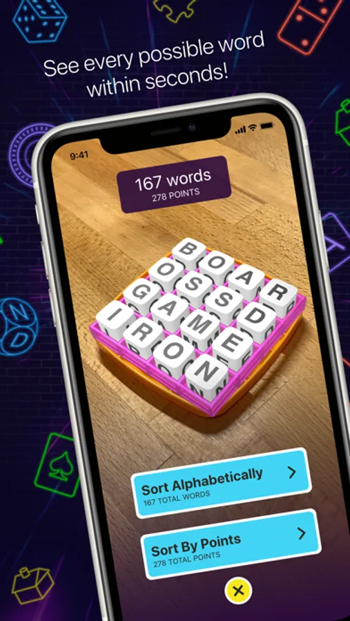 BoardBoss currently supports Boggle™, Big Boggle™, and Super Big Boggle™ with more games coming soon! After the game just scan with BoardBoss to