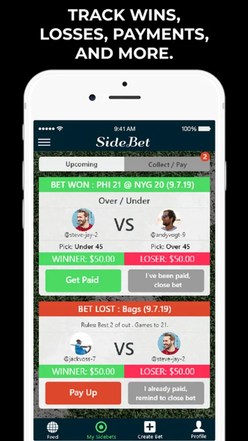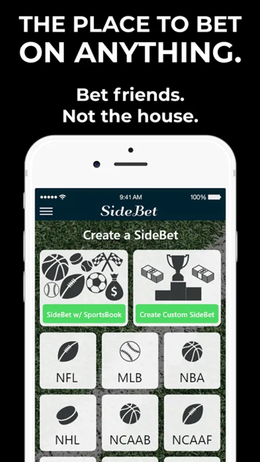 SideBet connects competitive people and turns ordinary events into exciting entertainment. Bet on your favorite sports like the NFL, NBA, MLB, NHL, NCAA Football, NCAA Basketball, and more.