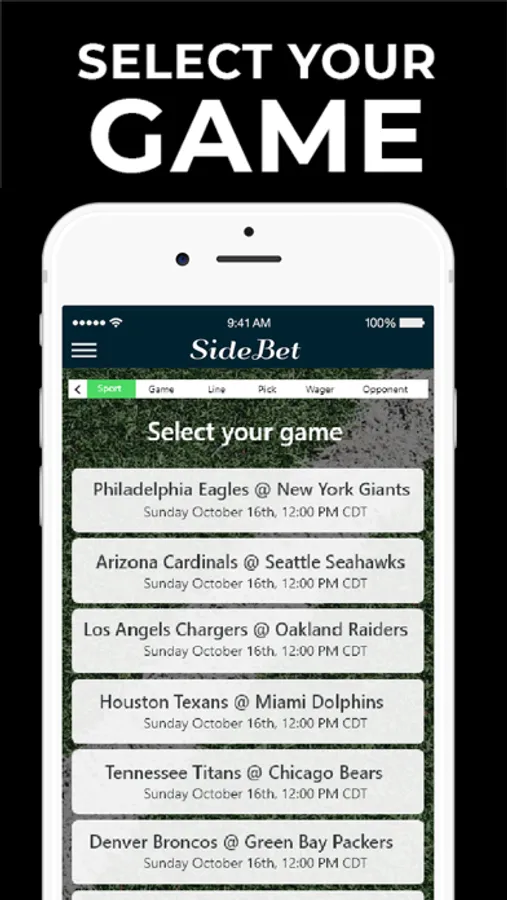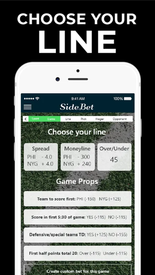 SideBet is not affiliated with Apple, NFL, NBA, MLB, NHL, or the NCAA. SideBet is not a sportsbook. SideBet does not enforce bets. SideBet does not hold or transfer money through the app. SideBet is not a gambling operator and does not offer real money gambling. SideBet is a US based company headquartered in St. Louis, MO.