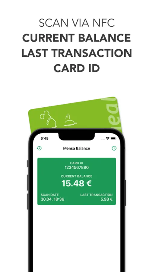 This app allows you to read the current balance, last transaction and card ID of your Mensa Card via NFC.