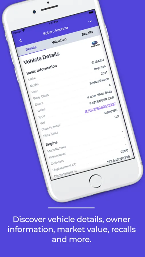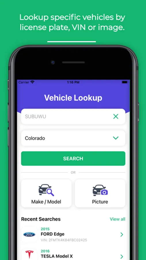 Looking for a used car? Want to learn more about a passing vehicle? Enter a license plate or VIN and quickly get information on model, year, engine, value and more specs. Make car buying easier.