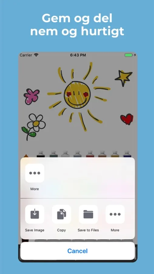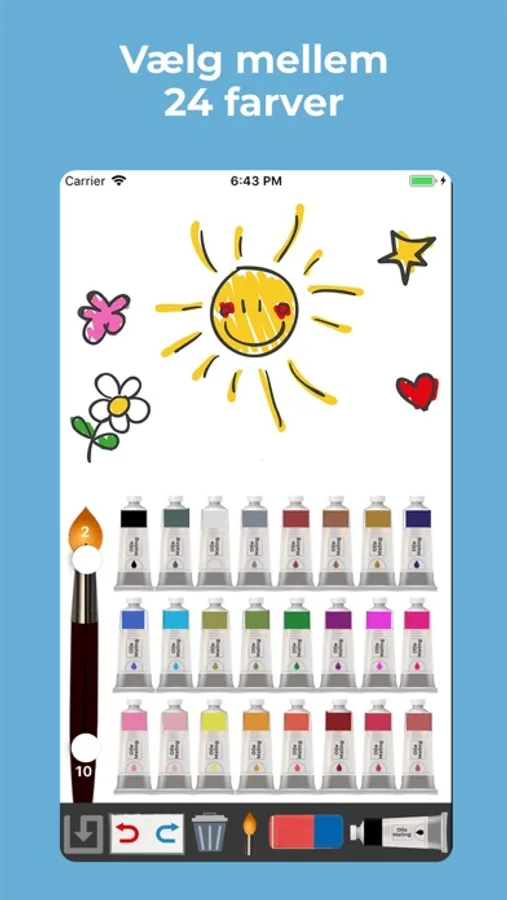 Tegnepladen er en tegne app med 24 forskellige farver hvor man kan slippe kreativiteten løs, med mulighed for at gemme og dele billederne på enheden.