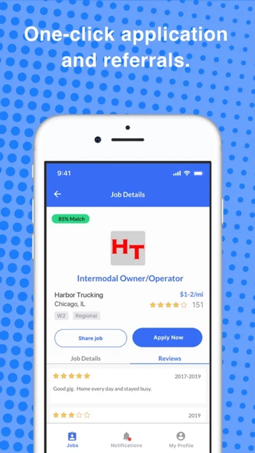 Fill out your profile in a few minutes, right from your phone, for a quick application. Get notifications when new driver jobs become available that match your profile.