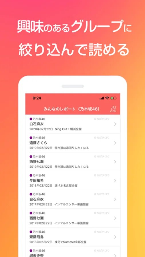 アイドルや声優など、推しメンとの思い出を振り返ったり、公開されている「みんなのレポート」を読んだりできます。