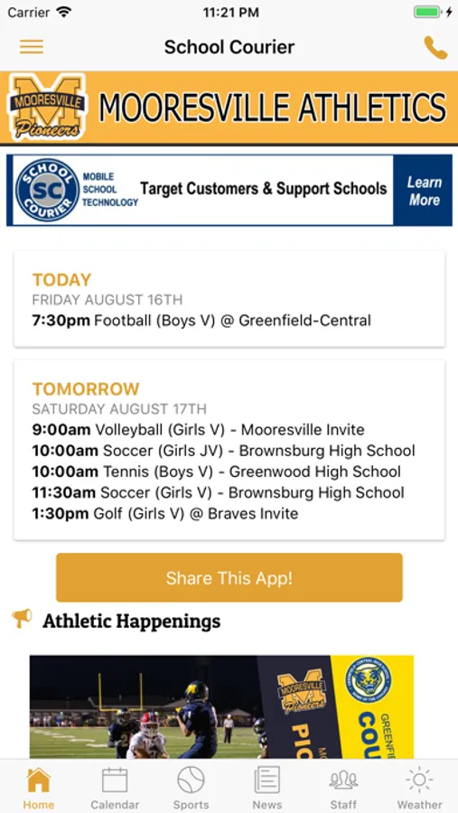 The Mooresville Athletics (Indiana) app for iOS allows student, faculty, parents, and the community keep up-to-date with athletic communication. The community of Mooresville is located southwest of Indianapolis, Indiana. The school district includes the Town of Mooresville as well as Brown Township, Madison Township, and Harrison Township.
