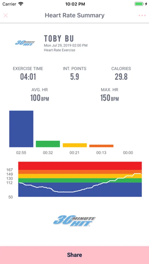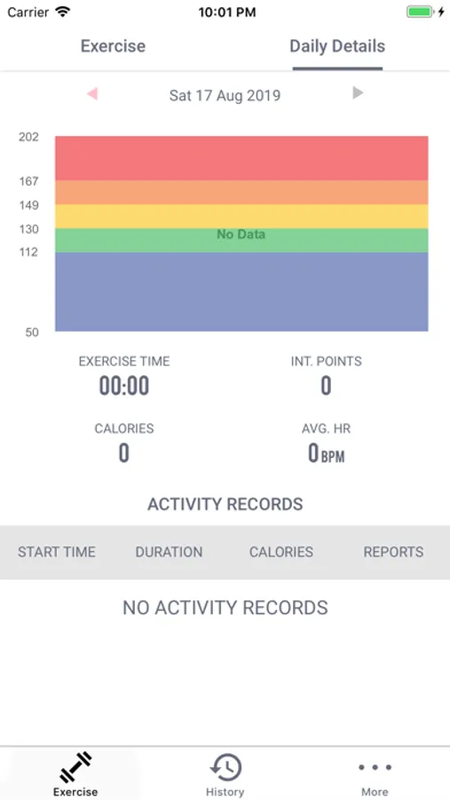 • View real time heart rate displayed in colored heart rate zone