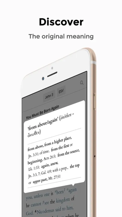 Dig deep into the Bible, with original Greek and Hebrew meanings just a tap away.