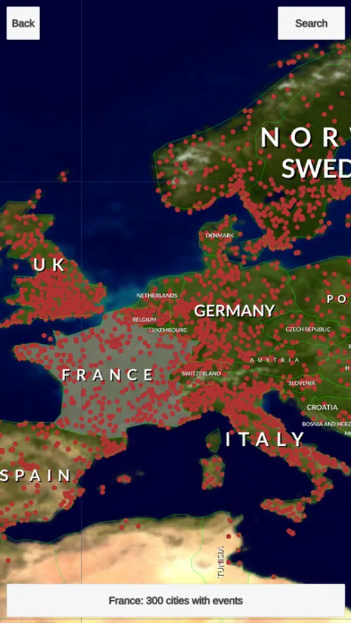 If many people report being on an event at about the same place and time, the location will pop up on the FFF official event map. If you press the Map button, you can zoom around in the latest map. The map is updated at least once a day.