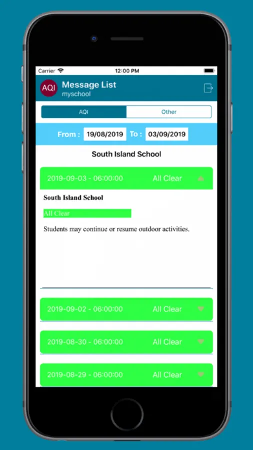 ESF schools air quality warning indicator and messaging app.