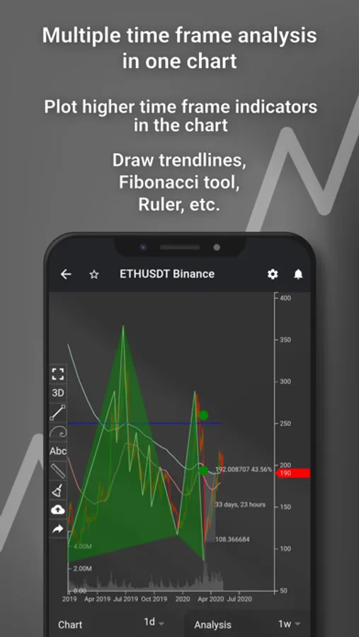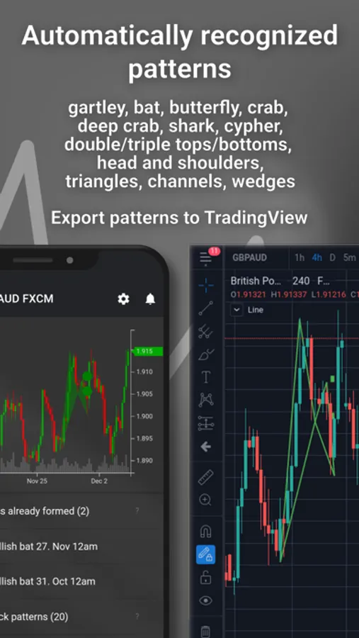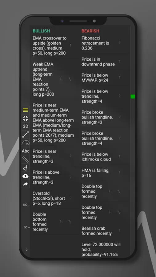 Automatic recognition and prediction of support and resistance lines, trend lines, triangles, wedges, channels, trend reversal patterns, harmonic patterns, candlestick patterns, etc.
