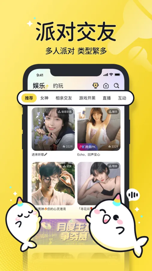 【語音聊天】:真人線上,連麥交友;遇見心儀的ta,用聲音傳遞情感,拉近彼此的距離。