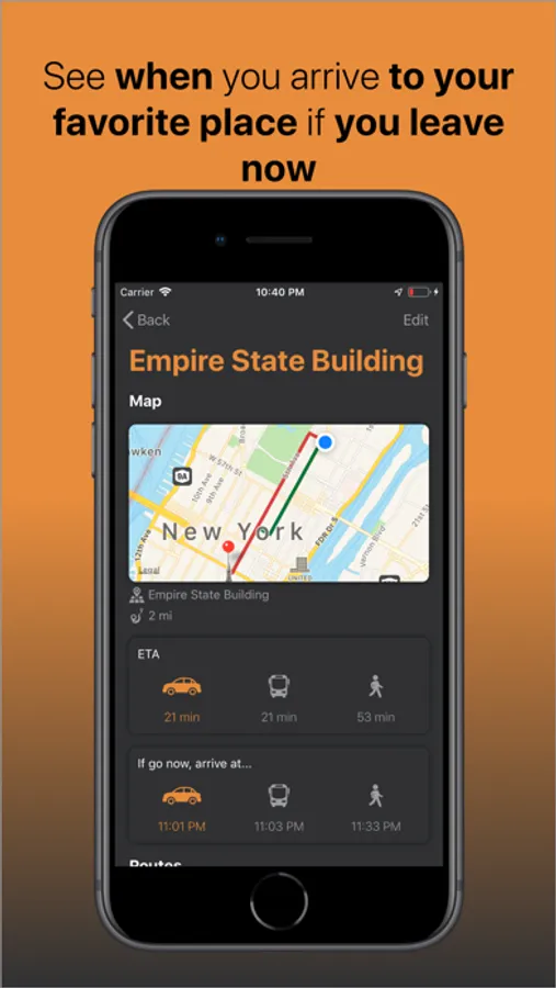 You can scroll the screen to see how lond will the trip take. It is very convinient, because now you do not need to build several routes in a navigation app in order to understand when you should leave.
