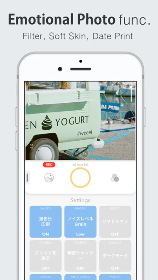 The Feelca app provides a film-like filter and mirrorless camera functions.