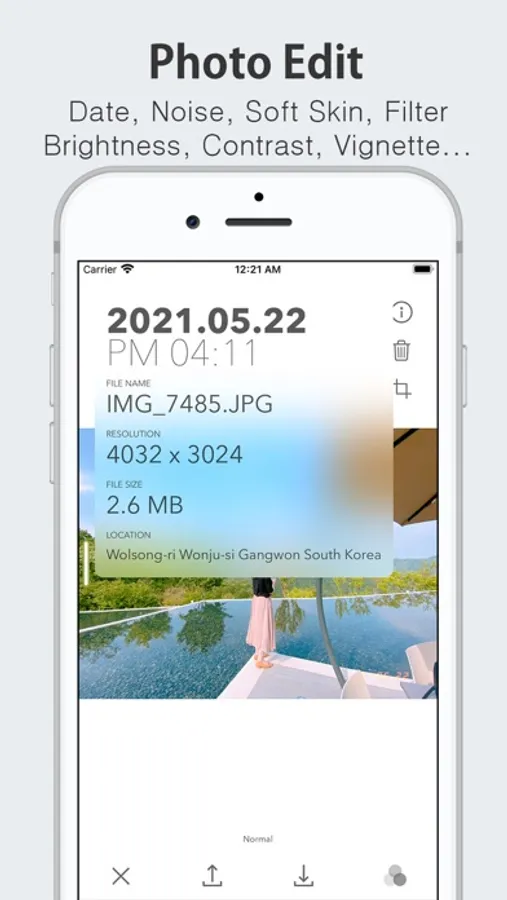 Adjust functions : Brightness, Contrast, Saturation, White Balance, Vignette, Sharpen, Blur, Highlight, Shadow