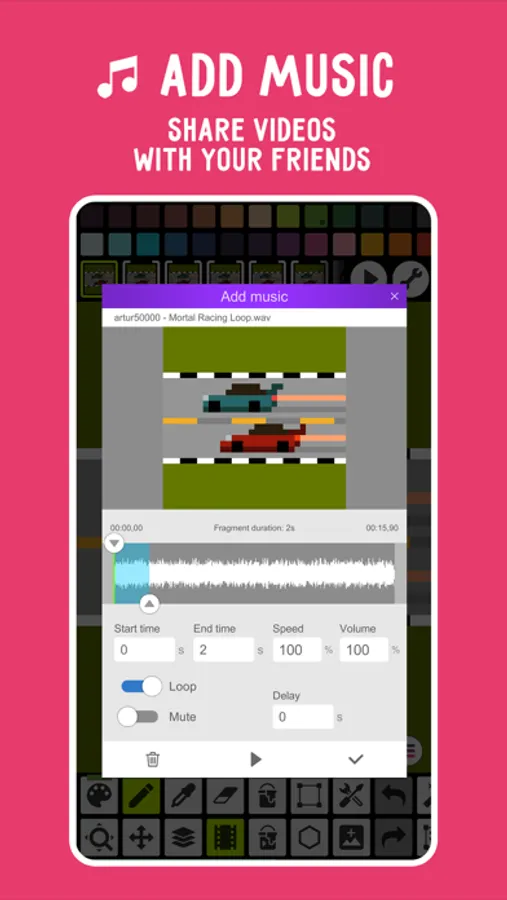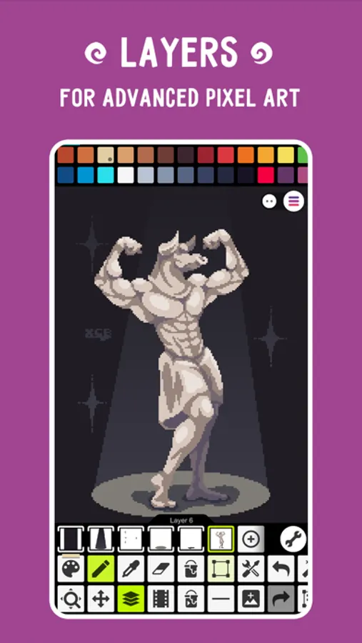 Pixel Studio is a new pixel art editor for artists and game developers. Simple, fast and portable. No matter whether you are a beginner or a professional. Create amazing pixel art anywhere and anytime! We support layers and animations and have a ton of useful tools - all you need to create cool projects. Add music to your animations and export videos to MP4. Use Google Drive to sync your work between different devices and even platforms. Join Pixel Network™ - our new pixel art community! Don't doubt, just try it and make sure you've chosen the best pixel art tool ever! Over 2.000.000 downloads around the world, translated to 23 languages!