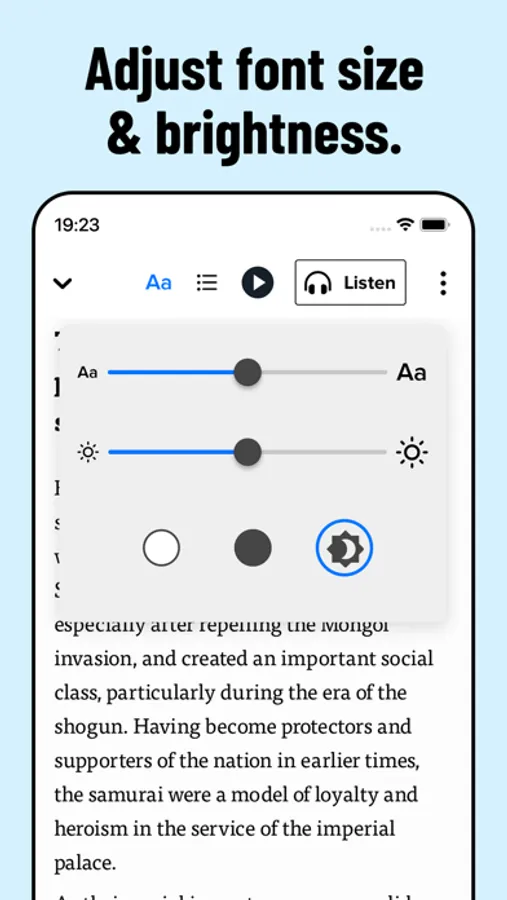 ● With advanced reading options, you can adjust font size and brightness, with day or night modes to make for a comfy read.