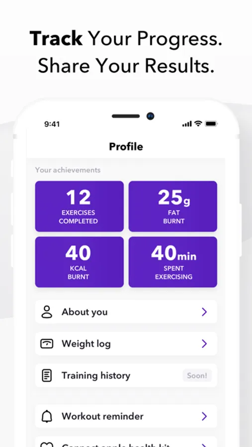 - Track your fitness results. Track calories burnt, fat burned, time spent exercising