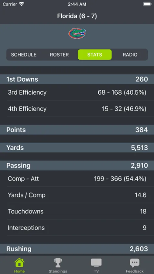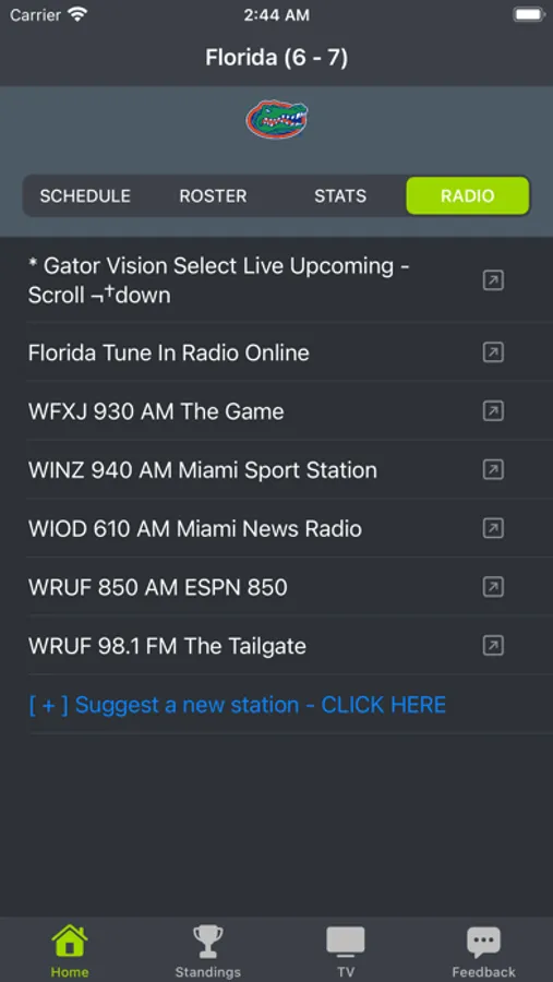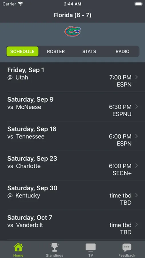 Florida Football Schedules provides scores, links to live radio, schedules, tv channels, player profiles, and game matchups in one location.