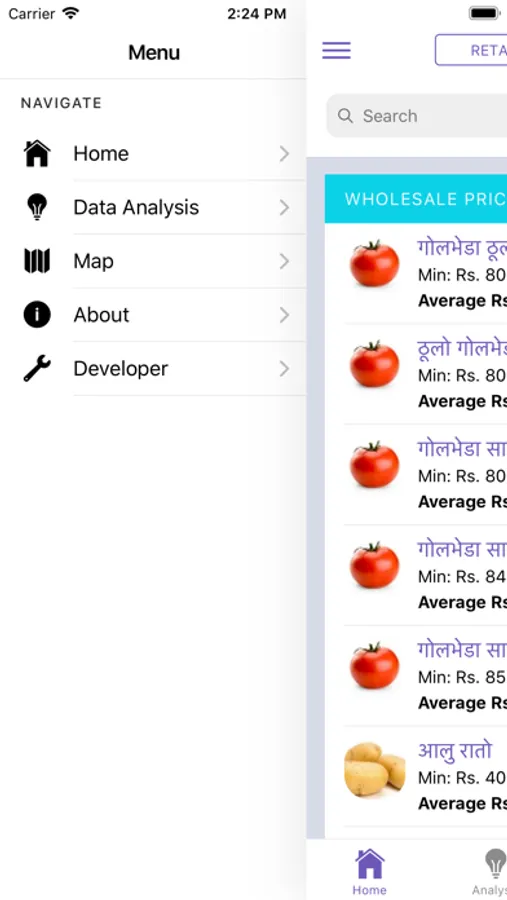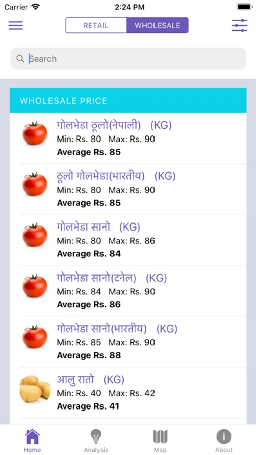 Now you can watch live WHOLESALE and RETAIL price of vegetable and fruits directly in you Smartphone by downloading Kalimati Veg Price App.