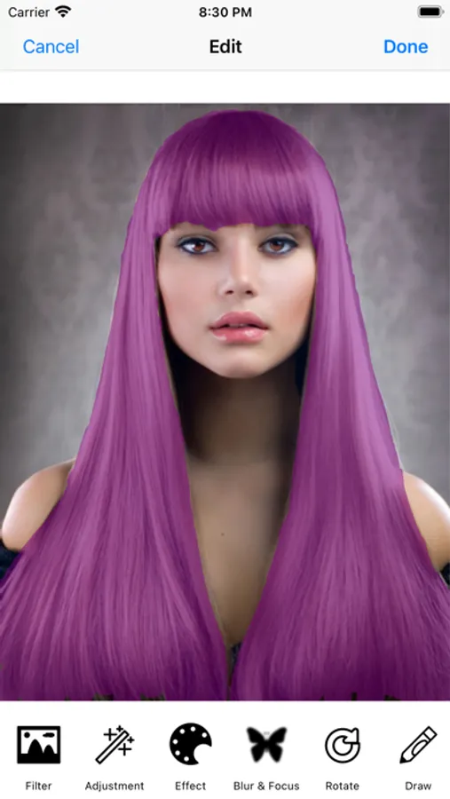 This app helps you to change a new hair color and edit your photos in just seconds. It's completely FREE!